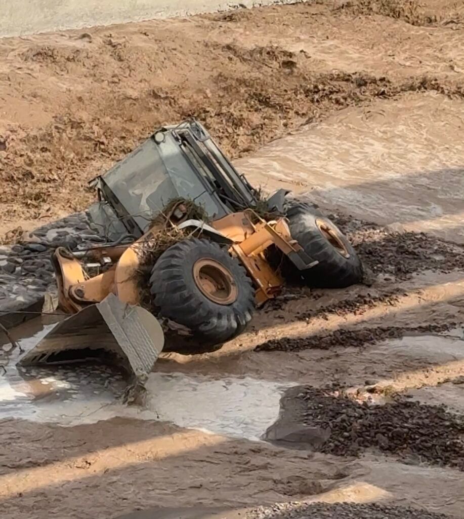 Topadora y camioneta fueron arrastradas por crecida del Arroyo Los Pozos en Luján de Cuyo